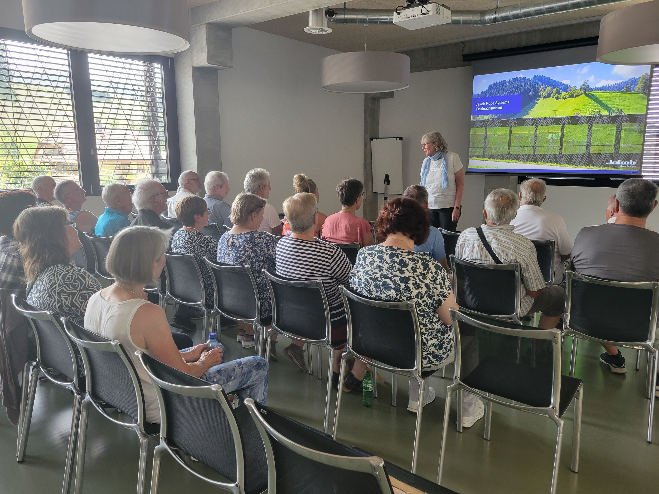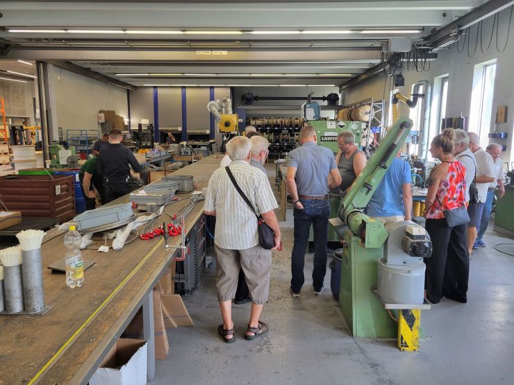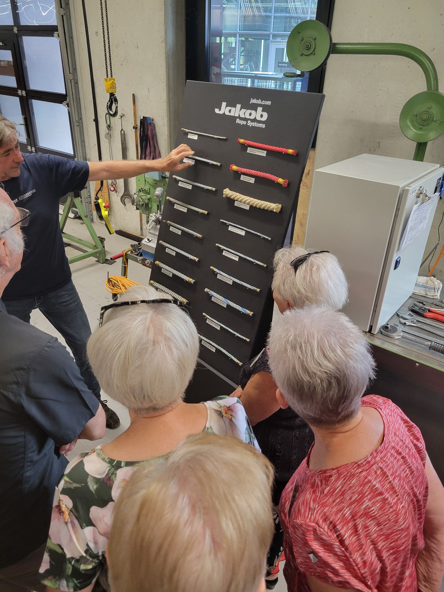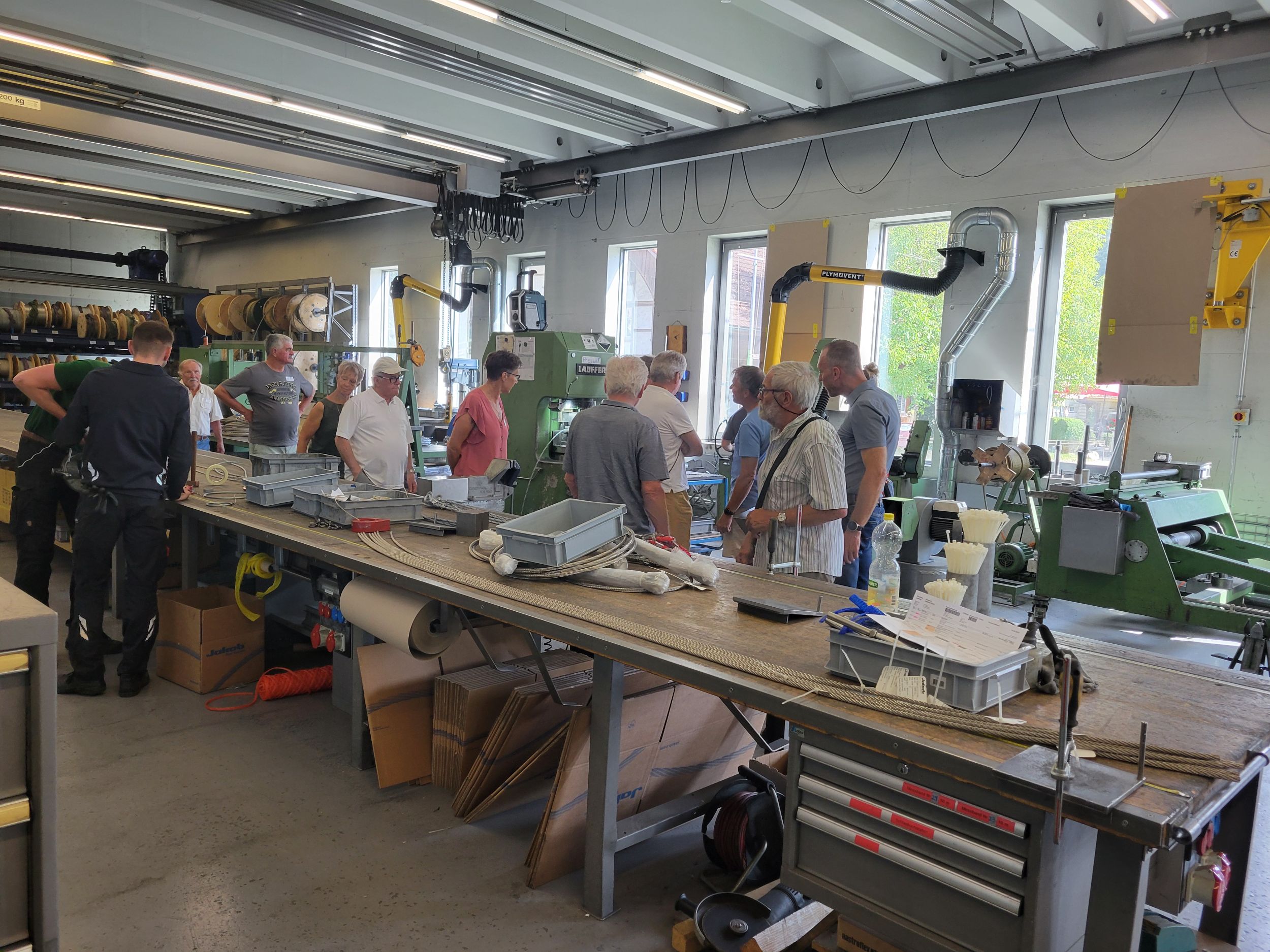 Das Treffen startete am 14. August 2025 in der Firma Jakob Rope Systems in Trubschachen. Peter Jakob erklärte uns 28 Anwesenden auf sehr eindrückliche Weise, wie sich die Firma seit der Gründung im Jahre 1904 von der Seilerei Jakob zum heutigen innovativen Grossunternehmen entwickelte. „Nur wer Neues wagt und umsetzt, kann sich weiterentwickeln.“ Diese gelebte Philosophie von Peter Jakob, seiner Familie und seinem Team überzeugte uns sehr. Mit grossem Staunen vernahmen wir von den wertvollen und einzigartigen Projekten in Vietnam und Saudi Arabien, die immer noch weiter ausgebaut werden, vom erhaltenswerten Unternehmensstandort Trubschachen, von Projekten und Aufträgen schweiz- und weltweit. Anschliessend durften wir in die Produktionshallen gehen und uns von Fachleuten die Herstellung von Drahtseilen und die eindrückliche Konfektion von Draht- und Faserseilen erklären lassen.