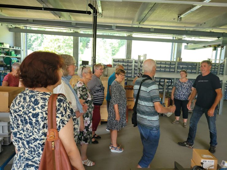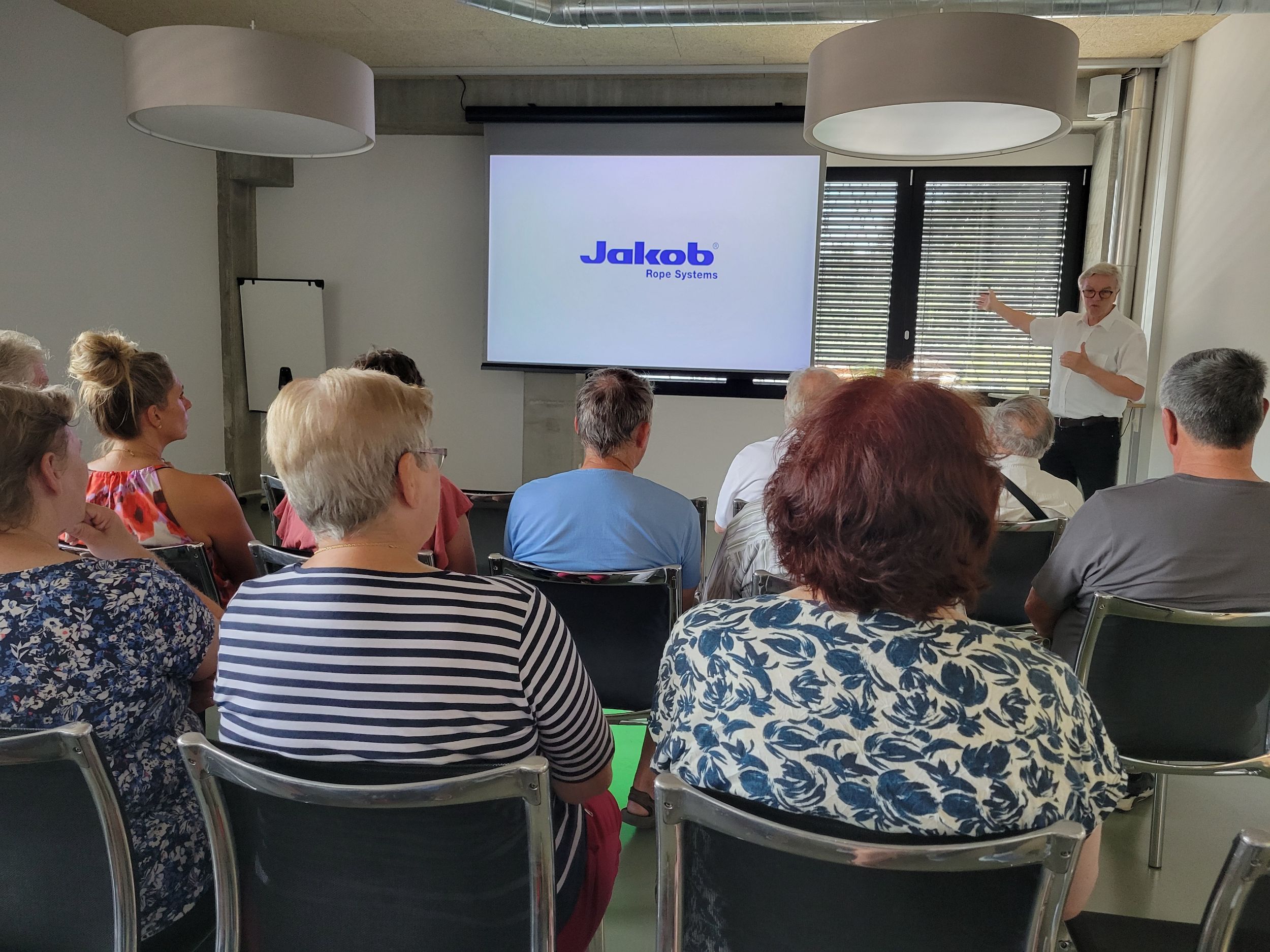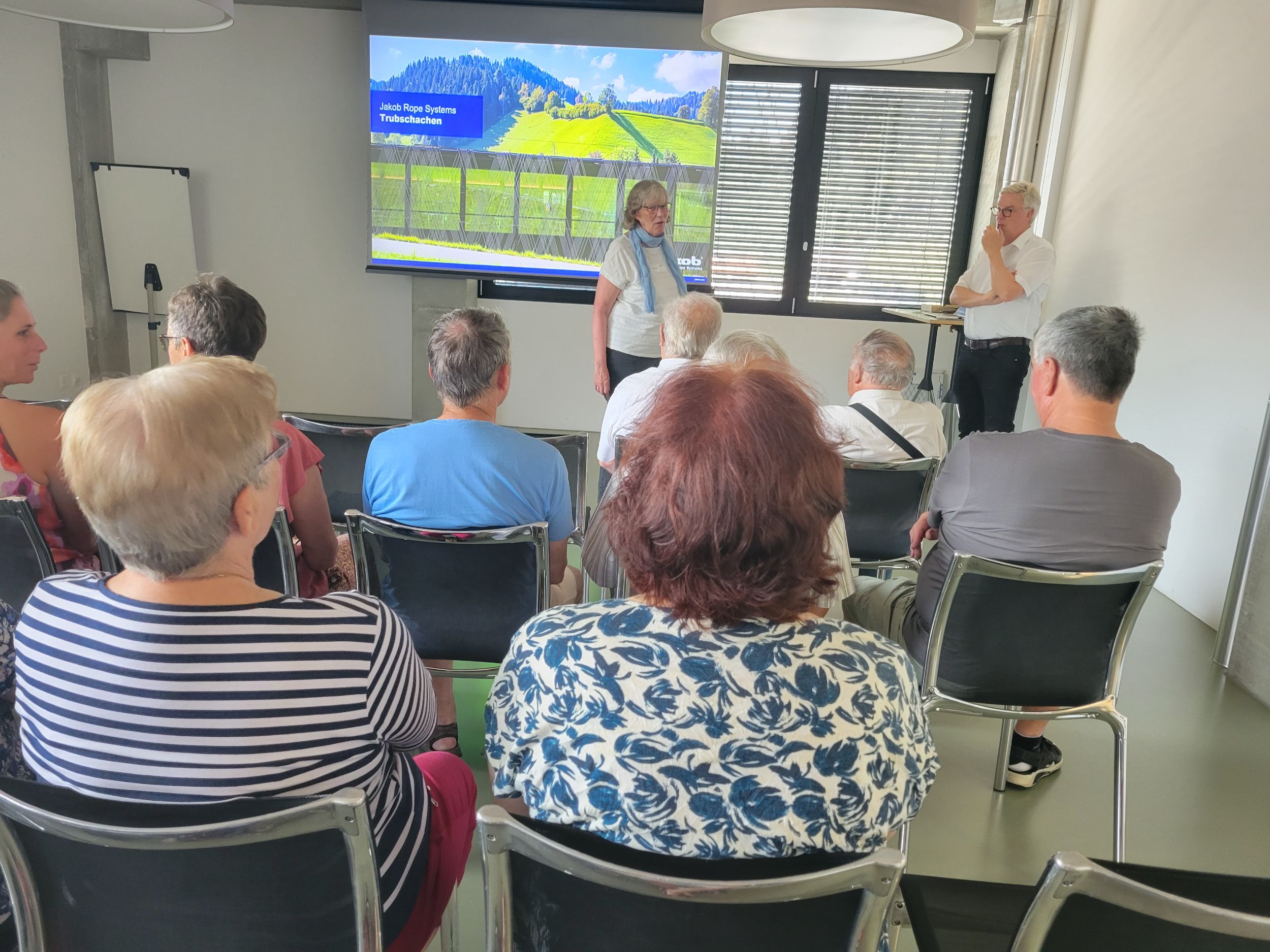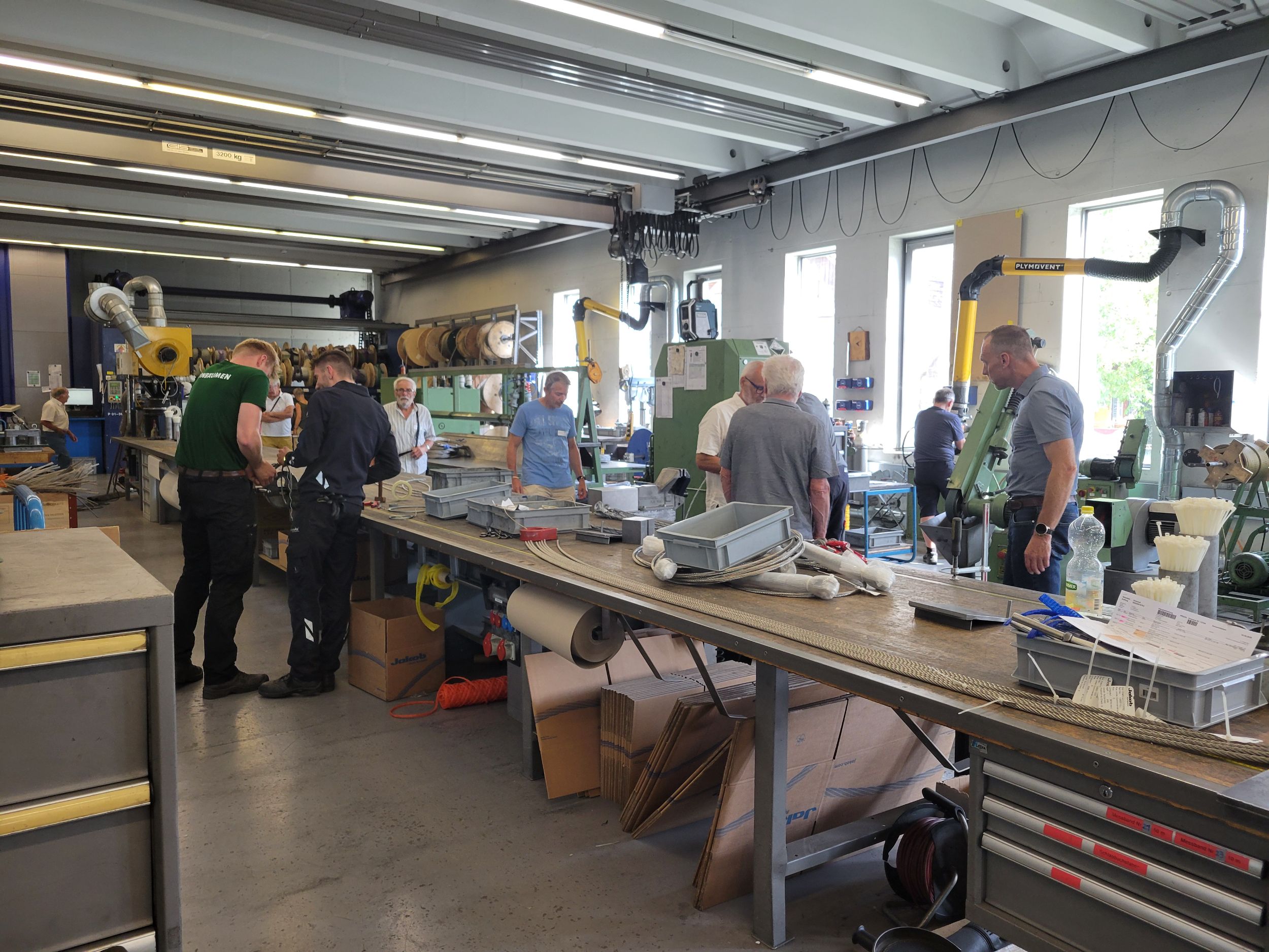 Das Treffen startete am 14. August 2025 in der Firma Jakob Rope Systems in Trubschachen. Peter Jakob erklärte uns 28 Anwesenden auf sehr eindrückliche Weise, wie sich die Firma seit der Gründung im Jahre 1904 von der Seilerei Jakob zum heutigen innovativen Grossunternehmen entwickelte. „Nur wer Neues wagt und umsetzt, kann sich weiterentwickeln.“ Diese gelebte Philosophie von Peter Jakob, seiner Familie und seinem Team überzeugte uns sehr. Mit grossem Staunen vernahmen wir von den wertvollen und einzigartigen Projekten in Vietnam und Saudi Arabien, die immer noch weiter ausgebaut werden, vom erhaltenswerten Unternehmensstandort Trubschachen, von Projekten und Aufträgen schweiz- und weltweit. Anschliessend durften wir in die Produktionshallen gehen und uns von Fachleuten die Herstellung von Drahtseilen und die eindrückliche Konfektion von Draht- und Faserseilen erklären lassen.