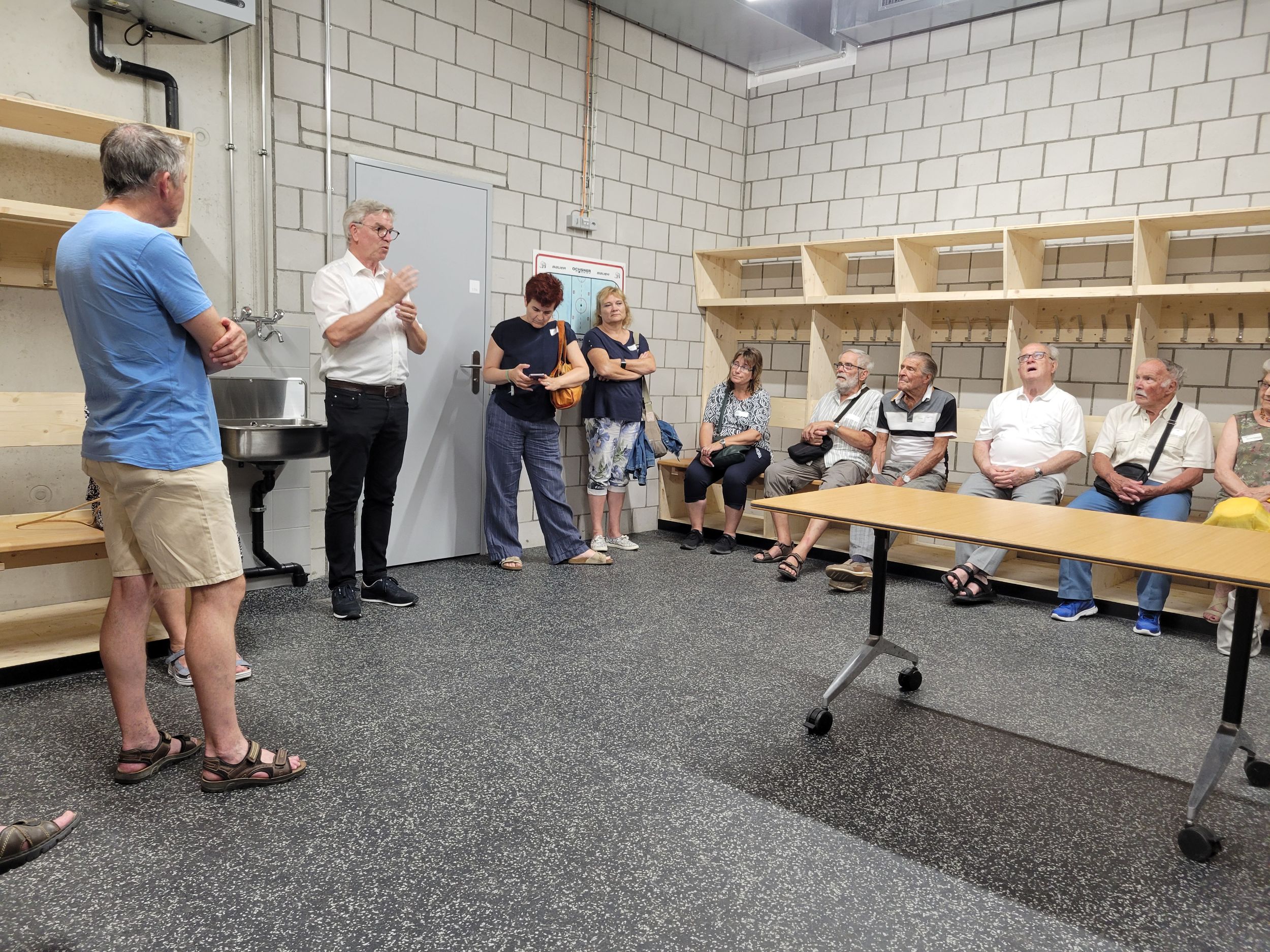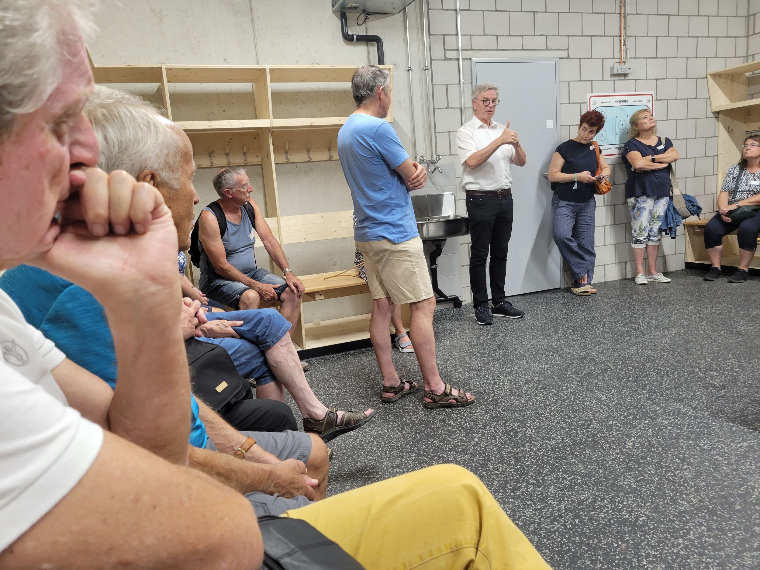 Anschliessend erhielten wir Einblick ins zweite riesige Engagement von Peter Jakob, in den SCL Tigers Campus Langnau. 14 Monate dauerte der Bau des neuen Trainingskomplexes, der sich direkt neben der Ilfishalle befindet. Mit Freude zeigte uns Peter Jakob auch die 1‘500 m2 grosse Turnhalle, die Platz für einen ganzen Athletikbereich und weitere Fitnessmöglichkeiten bietet. Mit dem neuen Campus bieten die SCL Tigers dank dem innovativen und riesigen Engagement von Peter Jakob und seinem Team einen sehr hohen Standard an Infrastruktur für sehr viele Leistungssportler:innen.