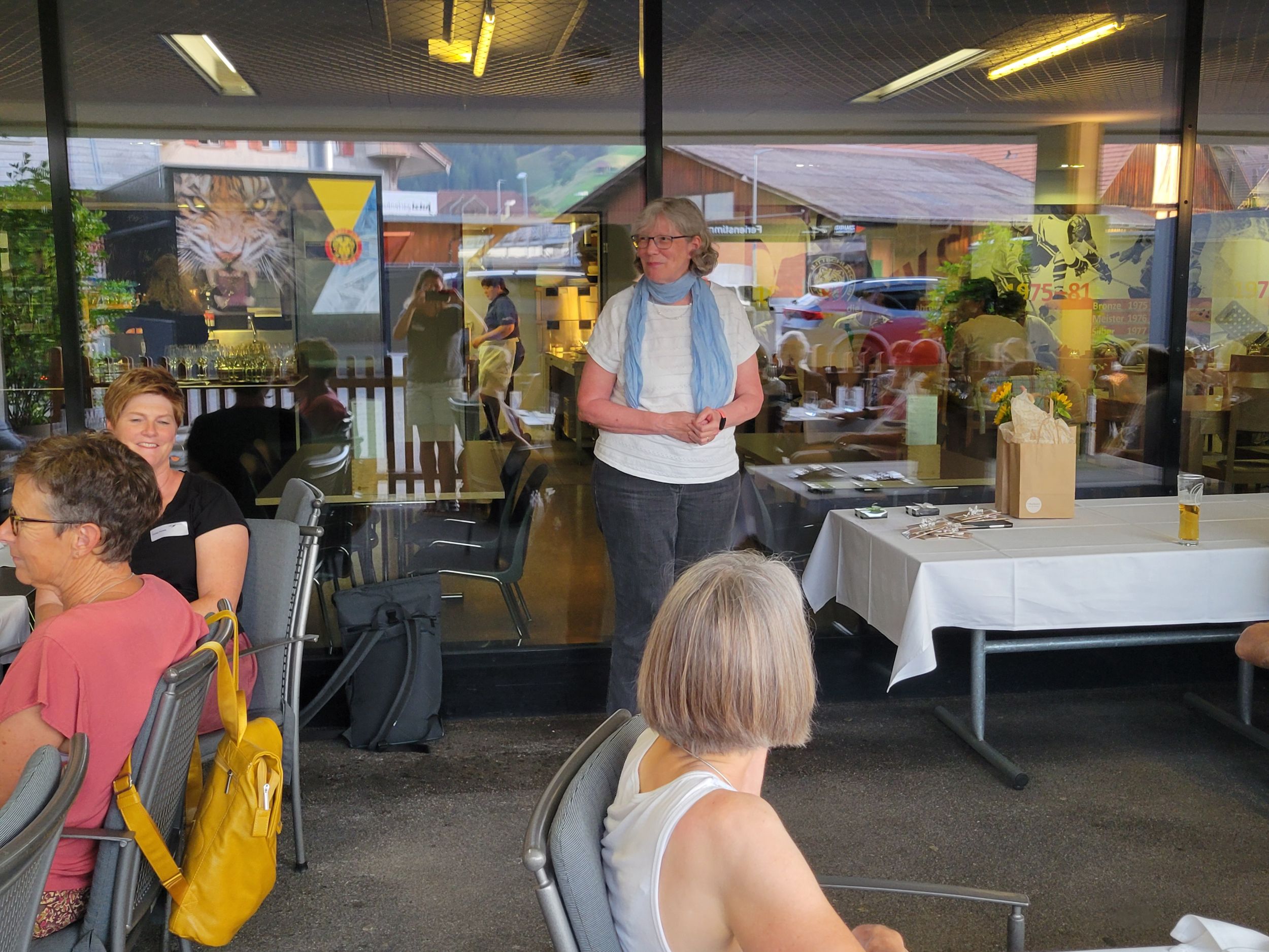 Anschliessend an die beiden beeindruckenden Betriebsbesichtigungen durften wir 32 Teilnehmenden im Bistro des SCL Tigers Campus einen erfrischenden Fitnessteller geniessen und vorab ein vom TBOE offeriertes, kühlendes Getränk nach Wahl. Vielen Dank! Nach dem Essen lauschten wir gespannt den interessanten Ausführungen von TBOE Vorstandsmitglied Christine Will, Ressort Personal und freuten uns über die Geburtstagsehrungen. 7 Ehrenmitglieder durften mit einem Präsent beschenkt werden. Jenen, die aus gesundheitlichen Gründen nicht teilnehmen konnten, wünschen wir von Herzen gute Besserung, Mut und alles Gute!